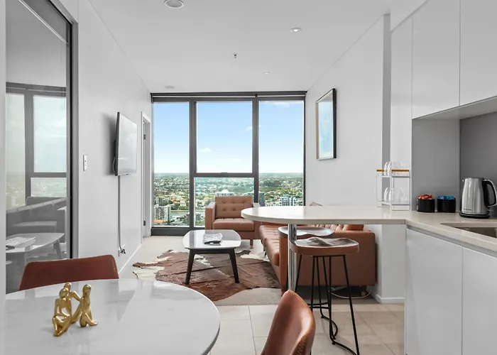 Le domicile de 61 m² est situé au centre de Brisbane, à moins de 19 minutes à pied des Espaces verts Southbank Parklands. De plus, l'appartement Central Cbd 2Br With Breathtaking Views, Pool & Gym se trouve à une courte distance du Centre commercial Queen Street.